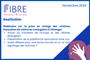 Pendant longtemps, la situation des victimes françaises de violences conjugales à l’étranger n’était pas abordée et encore moins prise en compte dans nos politiques publiques nationales de lutte contreLire la suite « Webinaire : prise en charge des victimes françaises de violences conjugales à l’étranger » - Webinaire : l’action sociale consulaire