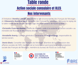 Du mois de mars au mois d’octobre 2025, une large réflexion sur l’amélioration de la protection sociale des Français de l’étranger s’est tenue sous l’égide des élus de l’AssembléeLire la suite « Assises de la protection sociale des Français de l’étranger : nos recommandations pour mieux valoriser les associations d’Entraide » - Table ronde : action sociale consulaire et intervention des OLES